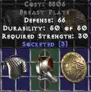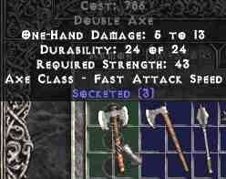 Tímto samozřejmě vše nekončí, protože ještě je nutné tu runu nějakým způsobem zakomponovat do výbavy naší postavy. Jako nejjednodušší způsob je nakoupit věci s dírami a do těchto naše runy zasadit. Jako nejvhodnější se pro shánění věcí na socketování jeví Act 2., kde se dá celkem lehce koupit štít, zbroj a jednoruční zbraň, které mají 3 sockety, což pro v podstatě znamená, že při socketnutí těchto věcí runama Tir získáme až +18 mana after each kill. Pokud někomu socket věci v obchodě nenabídnou hned, tak není problém několikrát refreshnout nabídku buď založením nové hry a nebo prostě vyběhne ven z města. Buď branou, nebo přes waypoint. U té druhé možnosti se refresh nabídky provede pokud jde přes wp na nějaký jiný ve stejném actu. Pokud pouze přejde do jiného actu, tak se refresh nekoná. Pokud je tohle někomu málo, tak samozřejmě může použít ještě helmu. Sehnat nějakou 2 socket helmu by v Act 1-2. neměl být problém.
