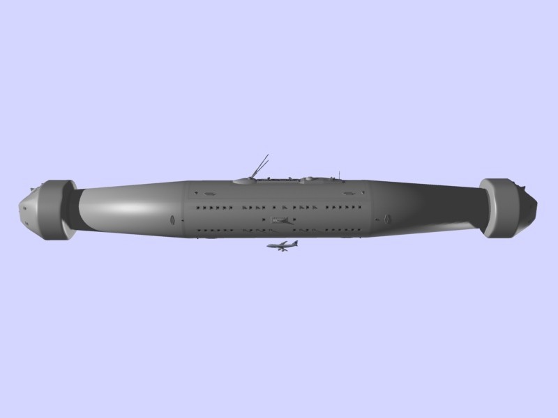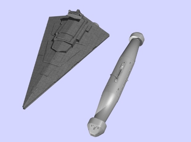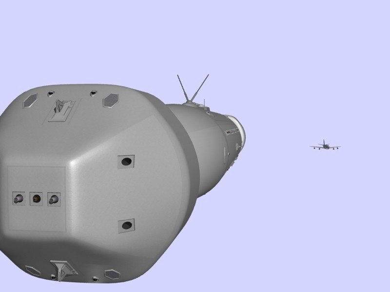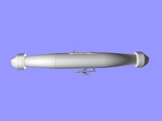 Model má několik verzí. První bylo srovnání lodi s dopravním letadlem b747 a obrázek s planetou, vidíte, jak se model upřesňoval:
