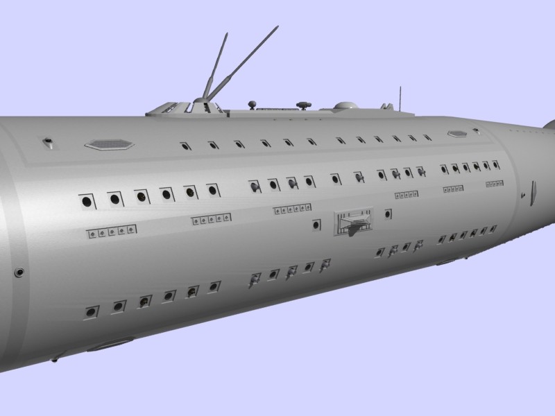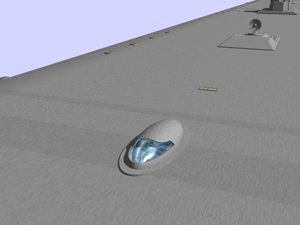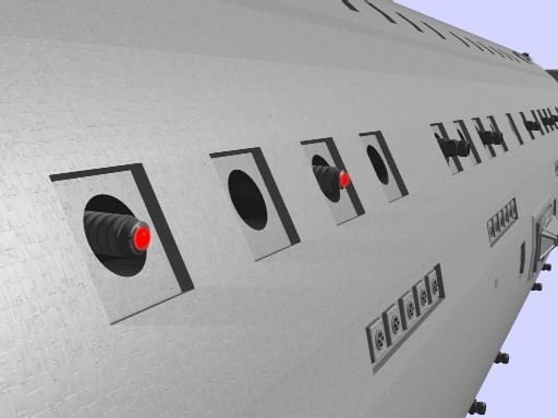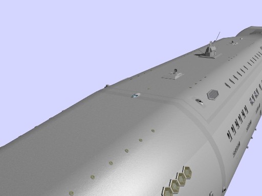 První verze modelu (v1) má poněkud jiný tvar pohonů, senzorovou věž i umístění zbraní, verze 2b má upravený počet doků a verze 2c je s už číslem na boku. A na další stránce je Niké v plné kráse