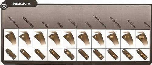 Podporučík, Poručík, Kapitán, Major, Podplukovník, Plukovník, Brigádní generál, Generálmajor, Generálporučík, Generál.