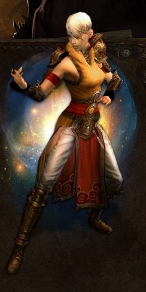 Monkovy skilly budou zaměřené na boj, útoky a únik. Možná dostane nějaké aury. Většina těch skillů je vlastně pro boj beze zbraně ale nějaké zbraně by měl mít, takže to nějak předělají, že by jedna větev něco vyžadovala. Monk nemá brnění, spíš chrániče nebo košile. Monk je pokrytý tetováním na počest svých 1001 bohů a možná to ve hře bude vidět.