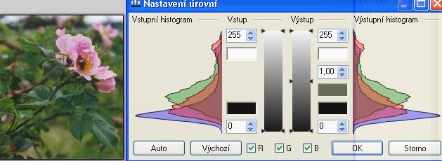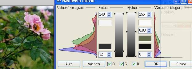 Obrázek je ale dost tmavý, je potřeba ho prosvětlit a to se dělá prostředním „výstupním“ jezdcem, tažením nahoru. (tady to funguje asi opačně než v Gimpu, pro zvýšení jasu je potřeba „ubrat“ pod 1, je to ale o posun stejnou hodnotu - 20).