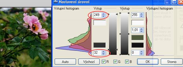 Pozn: kvalita obrázku je nižší než v orig článku, protože jsem zpracovávala už zkomprimovaný obrázek. Použila jsem ho hlavně proto, aby bylo vidět, že, navzdory odlišnému vzhledu histogramu, to pracuje stejně jako v jiných grafických programech.