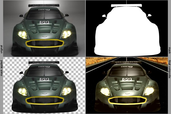 Tento příklad ukazuje, jak jsem pomocí tohoto tutoriálu vyřezal auto. Nerozmazával jsem hrany, protože auto je tvrdý materiál.