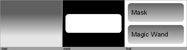 Masky jsou užitečné tam, kde potřebujete dělat něco s kulatými věcmi. Obvykle když chcete kulaté tlačítko s přechodem. Řekněme, že chcete vyrobit lesklé tlačítko, nakreslíte zaoblený obdélník, a v nové vrstvě uděláte přechod. To funguje ale hrany jsou zubaté. Místo výběru zaobleného obdélníka kouzelnou hůlkou, uložte ten zaoblený obdélník jako masku a importujte ji přes gradient.
