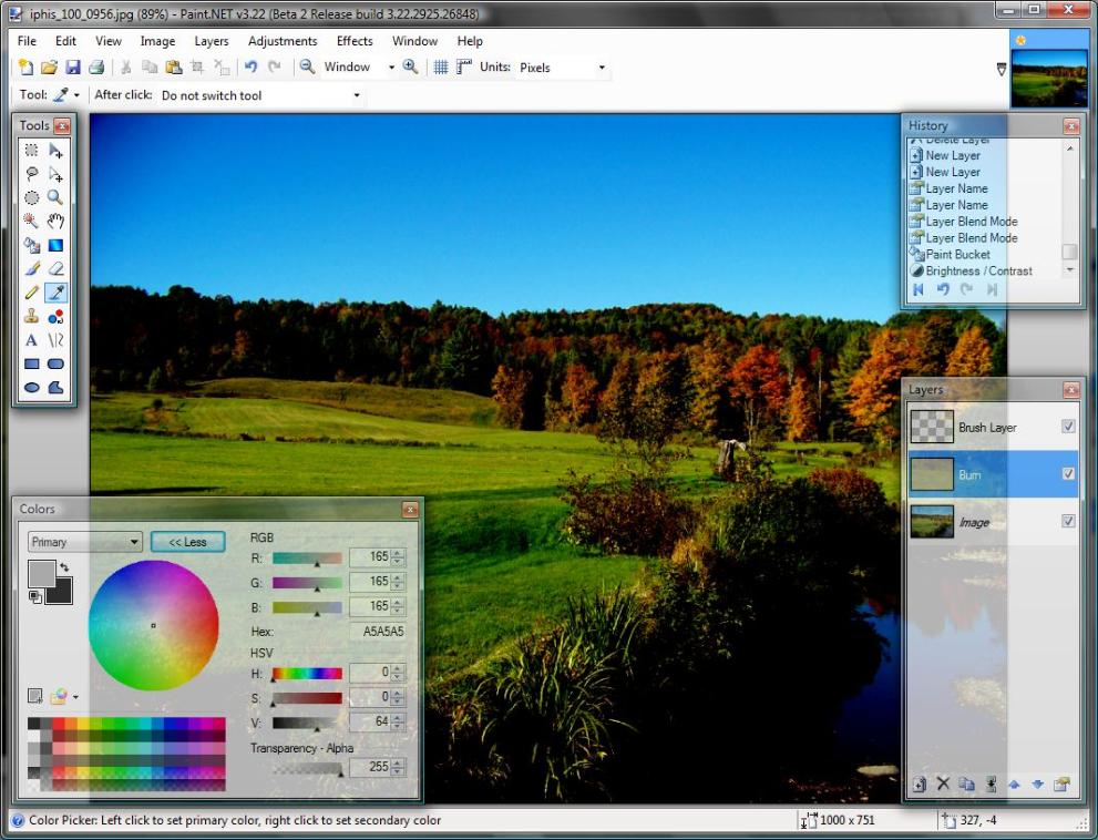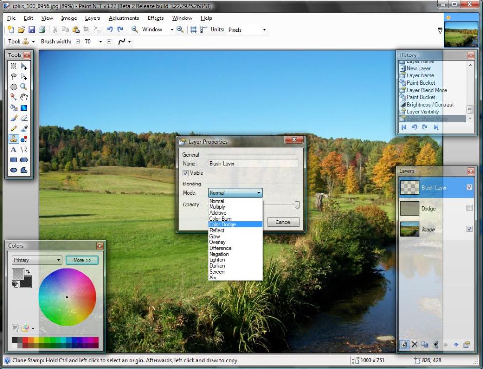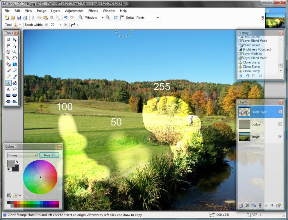Aktualizace: Nyní lze na zesvětlení / ztmavení pomocí štětců použít plugin TR's Dodge and Burn. I měkká guma je nyní standardní nástroj paint.net.