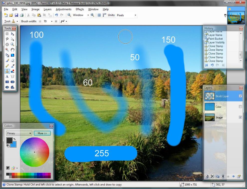 Často požadované, ale doposud jsme mohli jen sedět a říkat "počkejte na 4.0". A teď můžeme říct "Hej, víte co? Můžeme mít měkké štětce!" Jasně, Photoshopí štětce jsou mnohem … však víte .. ale v Paint.NET se k tomu hodně těsně přiblížíte, když to uděláte správně!