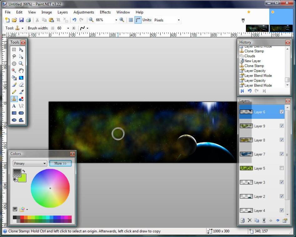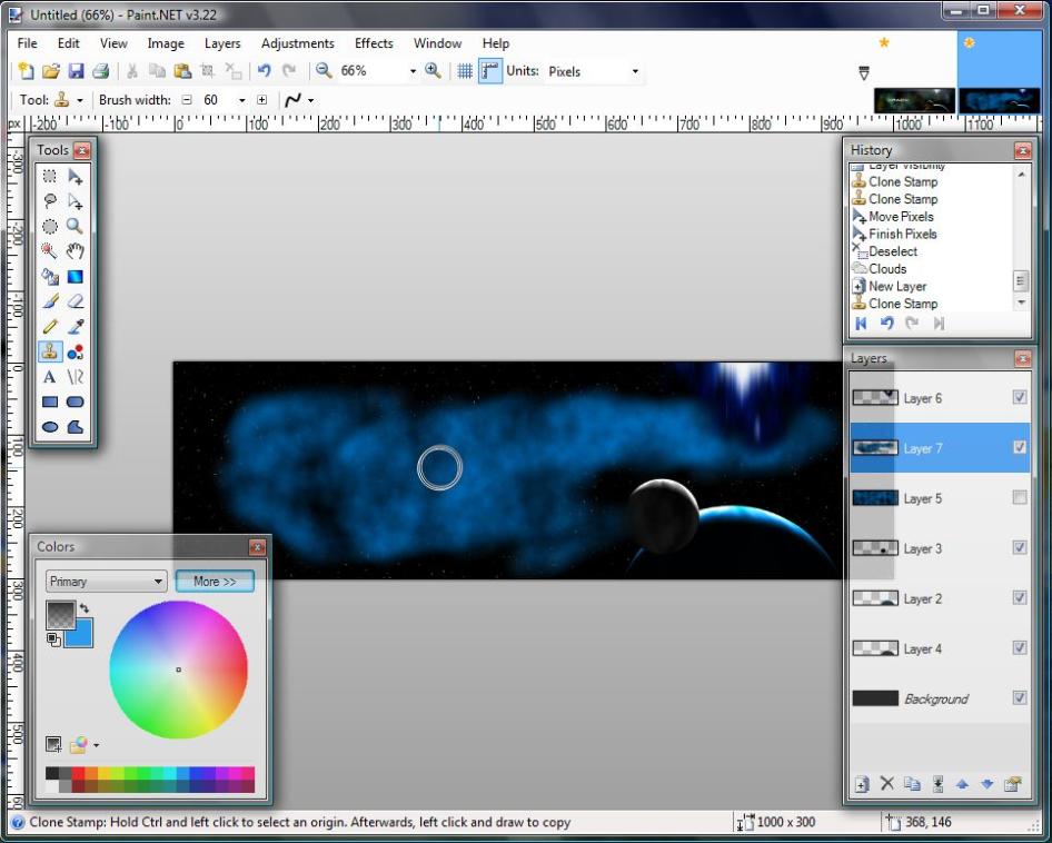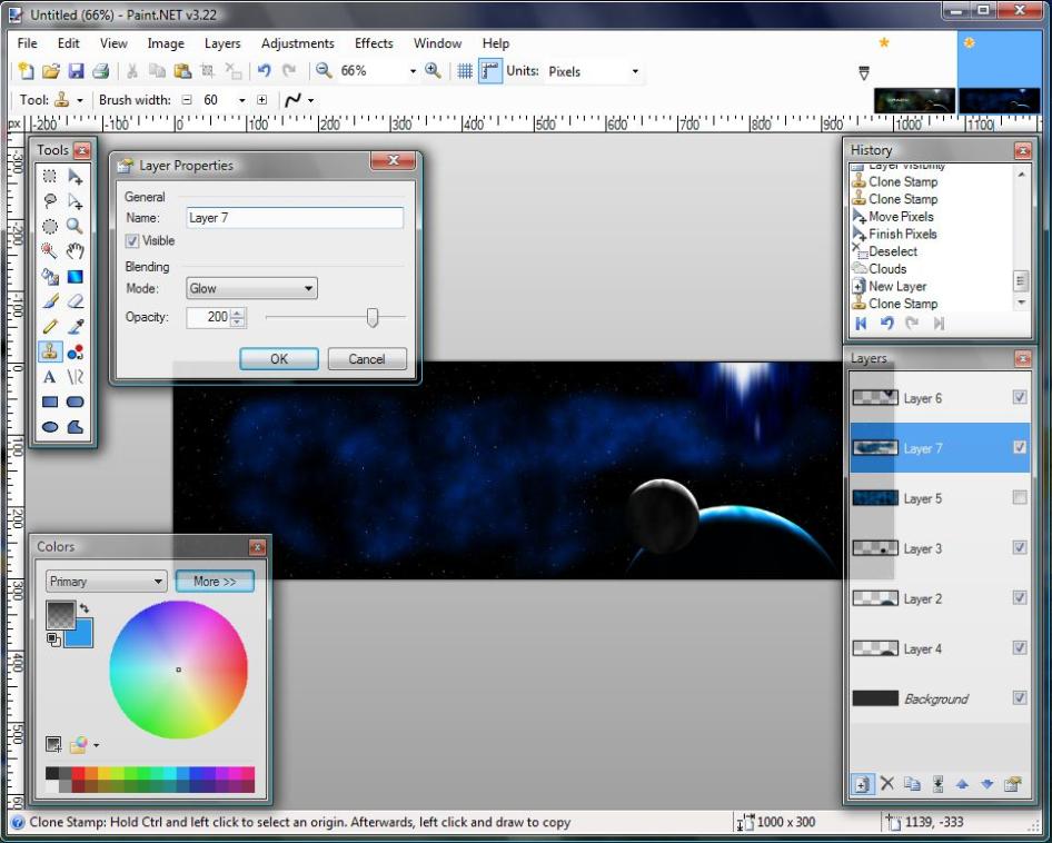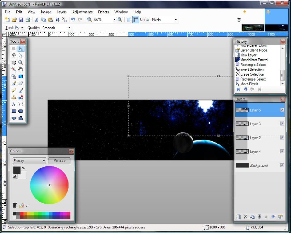 Pozn SuE: jestli vás hvězdičky zaujaly, zkuste se podívat na články o space artu na tutorials.cz. Návody tam jsou česky, sice pro Photoshop, bohužel někdy dokonce pro anglický, ale z těch obrázků u návodů by v Paint.NET něco šlo poskládat.
