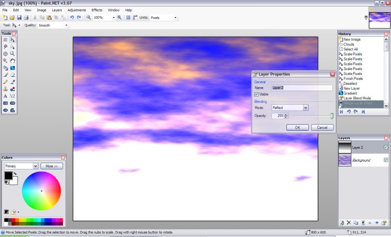 (nebo klávesa F4) režim míchání Odraz, slučte vrstvu