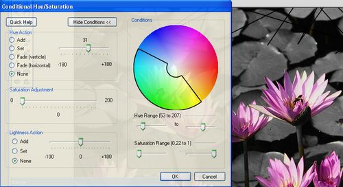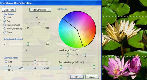Conditional hue/saturation