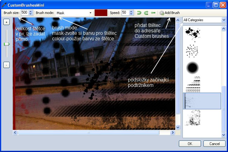 - Na této vrstvě vyvolejte CustomBrushesMini a udělejte, co potřebujete a potvrďte to OK.