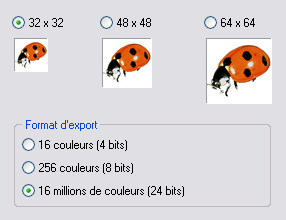 PhotoFiltre studio umoòuje exportovat ikony velikosti 32x32, 48x48 a 64x64.