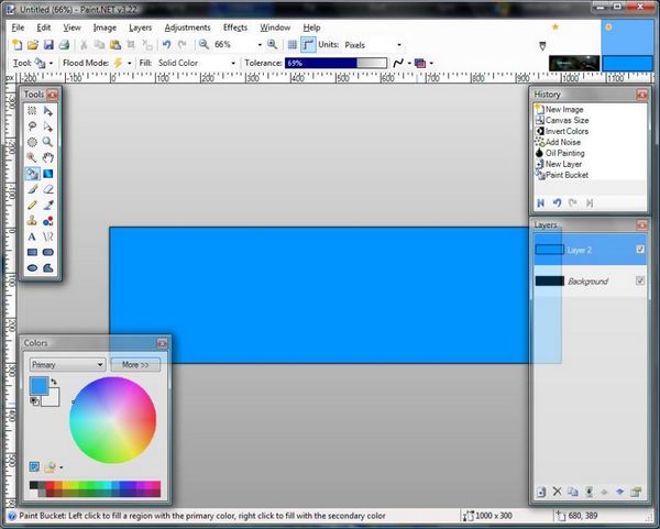 Potom udělejte novou vrstvu a vyplňte ji jakoukoli barvou. Mám rád modrou a proto je to modrá.