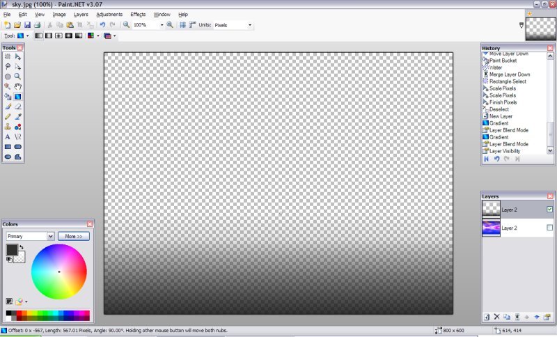 Většina lidí se ptá, jak udělat oblohu, začnu tedy oblohou. Vrstvy a režim míchání jsou vaši přátelé, nezapomeňte.